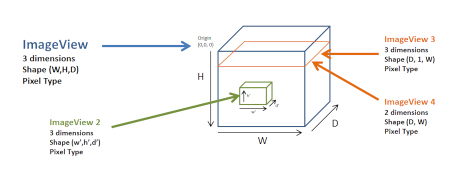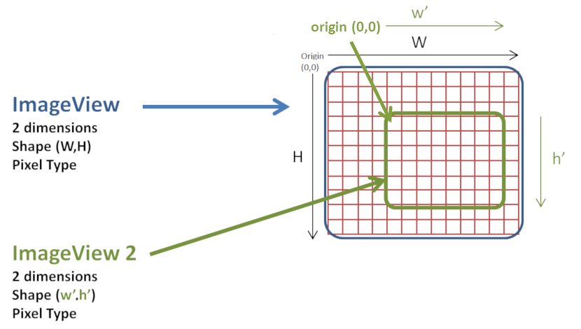 For example, in the following figure, ImageView 2 is created from original ImageView, with a region defined by its origin and its shape.