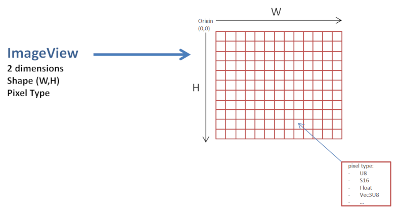For example, in the following figure, ImageView 2 is created from the original ImageView, with a region defined by its origin and its shape.