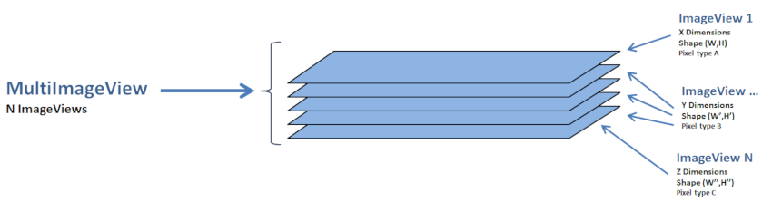A view can point toward multiple ImageView instances. This is a simple way to handle a stack of images. MultiImageView object aggregates ImageView instances with heterogenous properties.