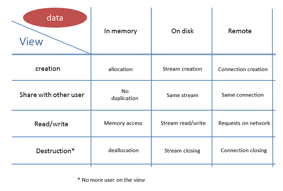 A View can also point toward a data contained in file. Data are accessible directly from the file without copy in memory, but low performance. It can be useful to read a small part of a huge file.