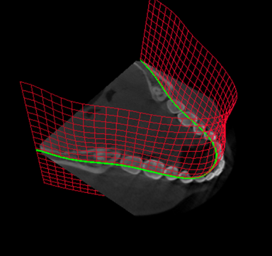 - the rows as polylines following the median axis of the jaw at each XY slice of the input volume intersecting the mesh.