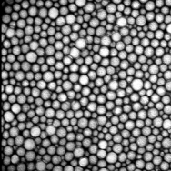 In an image made up of cells or objects partitioning the image, as in Figure 4, the FFT illustrates the presence of a network. Two cells are at a mean distance equal to $d$. If the distribution is stationary (the density is constant in each subarea of the image, the cells have similar shapes) and isotropic (no privileged direction), the modulus of the Fourier transform is a bright ring centered in (0,0), of radius $N/d$ where $N$ is equal to the size of the image. The central cross is almost invisible in this case.